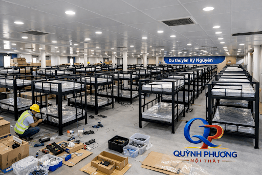 Với đặc thù hoạt động trong ngành du lịch và vận tải biển, không gian sinh hoạt trên tàu hoặc khu lưu trú tập thể thường bị hạn chế. Nội Thất Quỳnh Phương VINA PRO đã mang đến giải pháp tối ưu với dòng giường tầng sắt sơn tĩnh điện chất lượng cao.