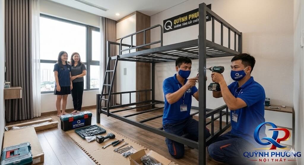 Trong bối cảnh diện tích nhà ở tại các đô thị lớn như Hà Nội ngày càng thu hẹp, việc tối ưu hóa không gian phòng ngủ trở thành ưu tiên hàng đầu. Giường sắt 2 tầng instock (hàng có sẵn) tại Nội Thất Quỳnh Phương chính là lựa chọn hoàn hảo cho các gia đình, ký túc xá, và homestay. Không chỉ giúp tiết kiệm diện tích, dòng sản phẩm này còn ghi điểm bởi độ bền cao và tính thẩm mỹ hiện đại.