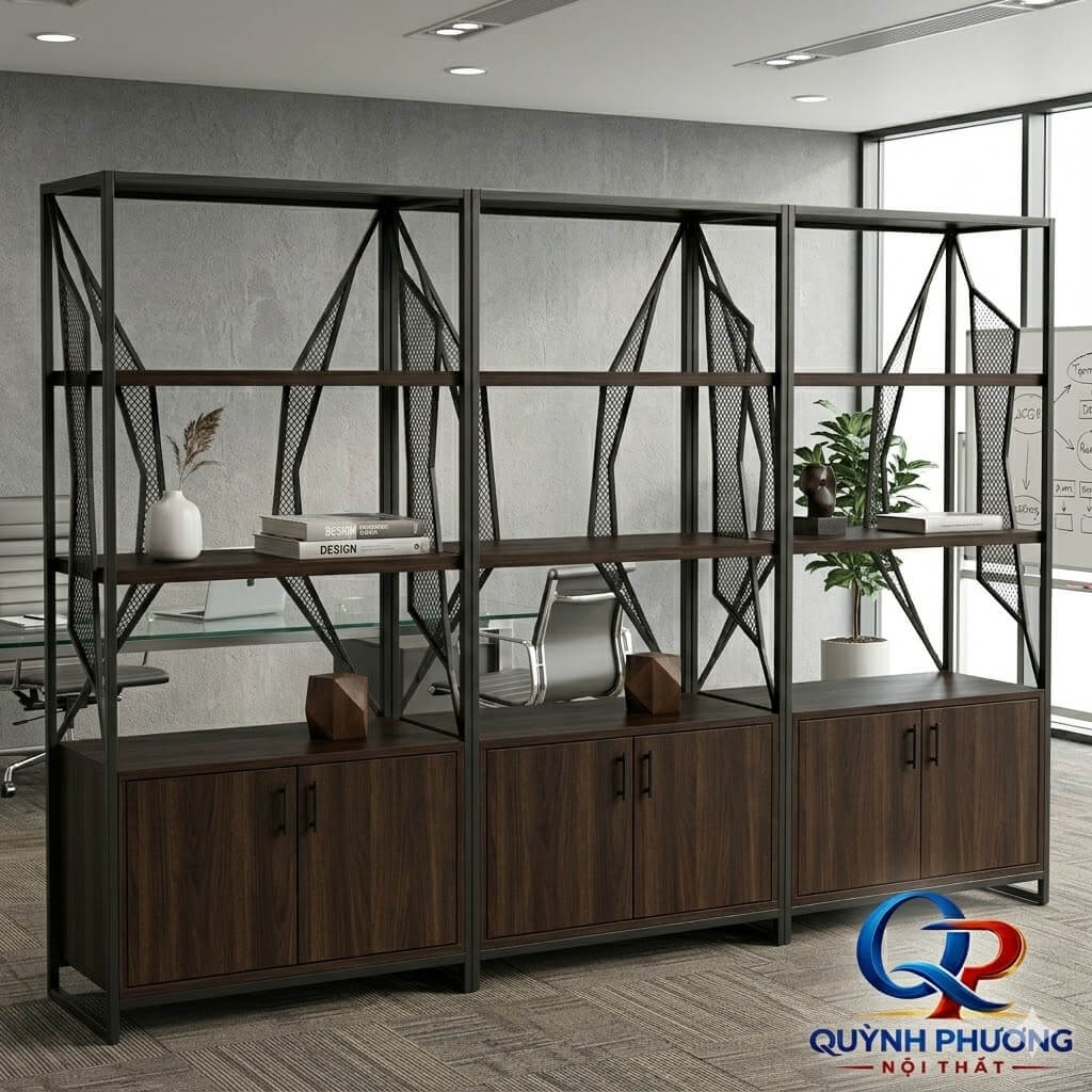 Kệ gỗ sắt có tủ phong cách hiện đại
